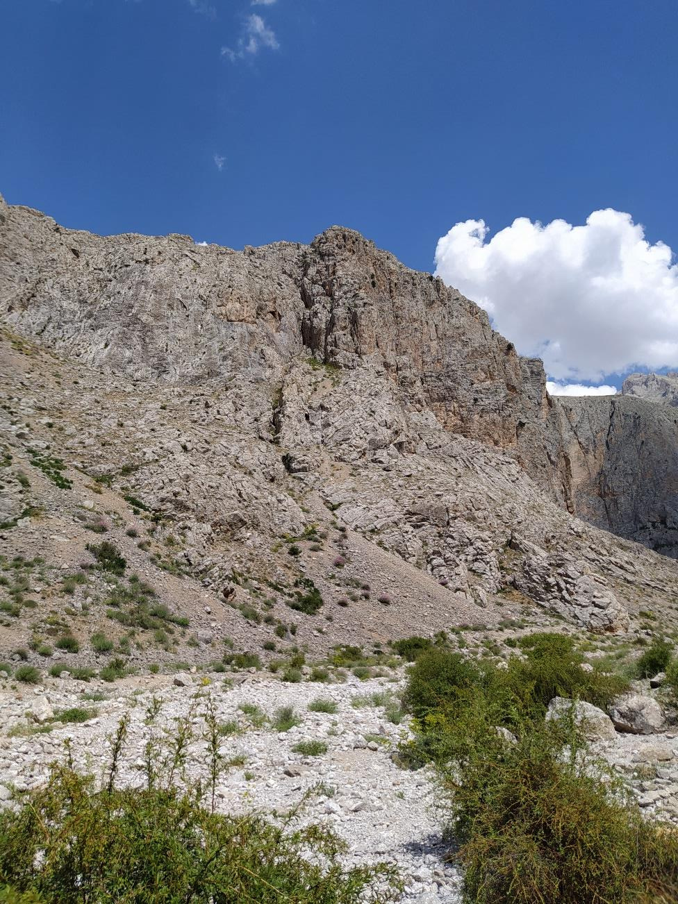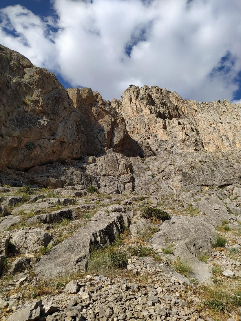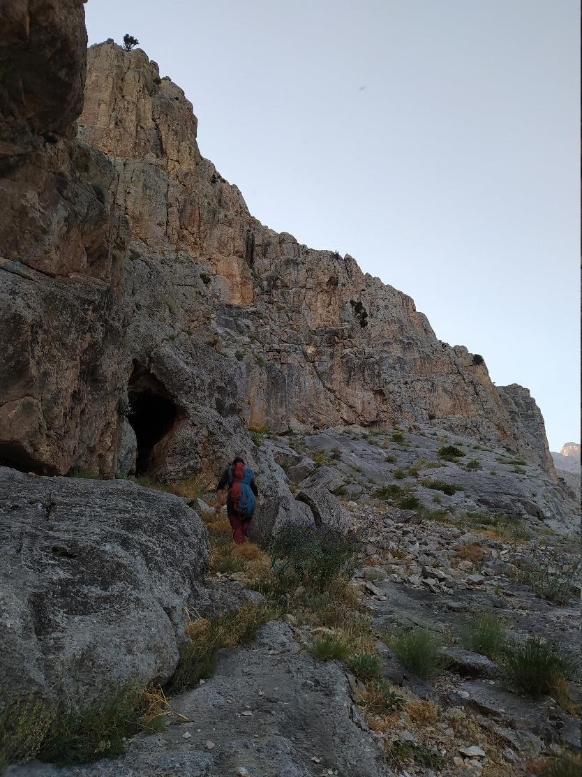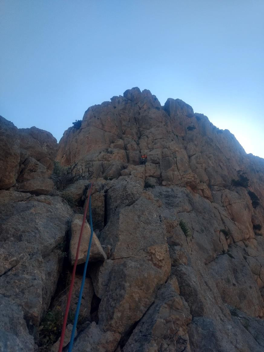 5.30 civarında uyandık, kahvaltı yaptık ve dağ evinden cimbara doğru yola çıktık. Rota cimbar girişinden itibaren Foto1'deki gibi gözükmeye başlıyor. O sırtı hedefleyip kolay kayalardan ipsiz yükselmeye başladık.(Foto2) Mağaranın sağına geçtik ve burada ipe girmeye karar verdik.(Foto3)