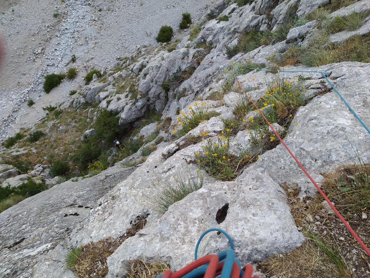 Aynı rotadan iki ip inişi ile vadi tabanına varılıyor. Eğer arzu edilirse rota bitiminden yürüyerek inilebilir.