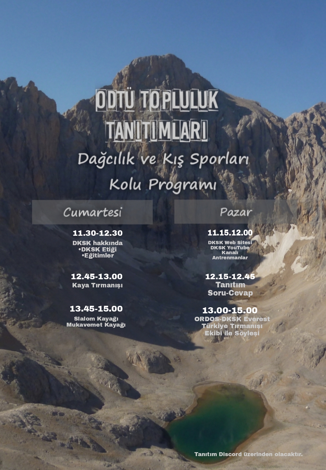 ODTÜ Topluklarının Tanıtım gününde DKSK olarak tanıtım programımız aşağıdaki gibidir. Programa Discord kanalından katılabilirsiniz.